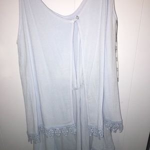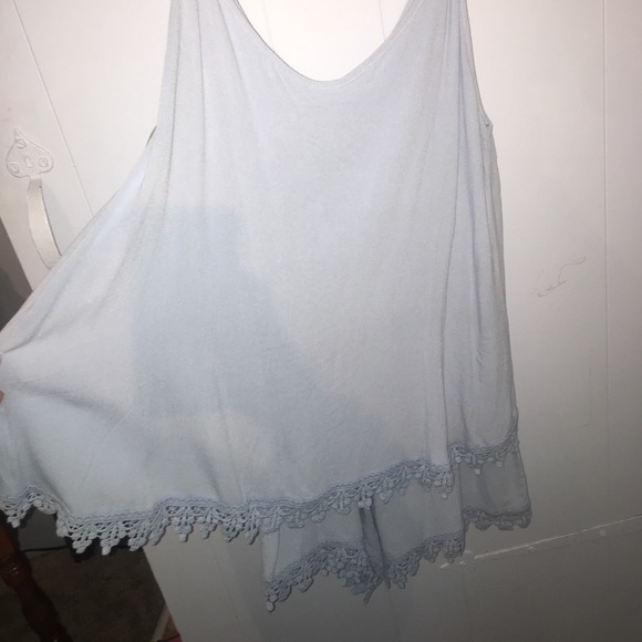 Baby blue layered romper. Lacy trim.