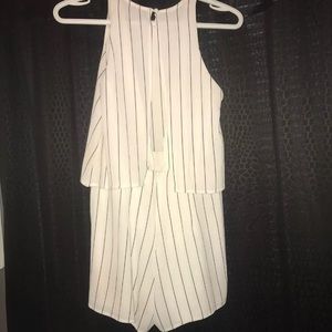 Black and white striped romper! The back it out on this, and it is so cute on!! I only wore it one time, it’s in perfect condition. Paid $65