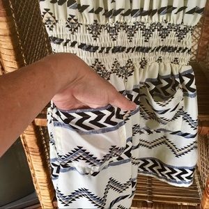This Romper comes with a Tribal Design in a Lovely Sateen Material. Elastics both at the chest and waist, has 4 working pockets; 2 in the front & 2 in the back. Perfect condition, only worn a couple of times.
