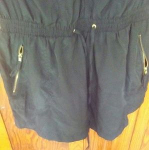 Black sexy comfortable light romper great for summer with flats or sandals or for a night out with heels. Top part has a working zipper and pocket zippers as shown in pictures. Size large with adjustable waist band. No rips, stains or tears.