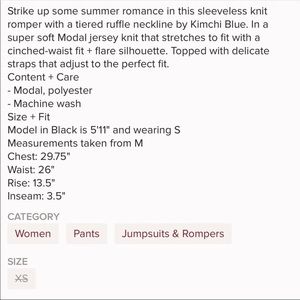 Urban outfitters size Xs lavender romper. Flowy, adjustable straps, super comfy. Removed tags and washed only to try on and it didn’t fit.