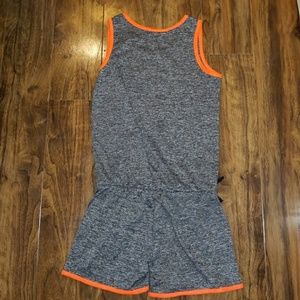 NWOT Orange Trim Romper Grey Blk. Waist Has Stretch. Has Two Front Pockets. One Piece Women's Or Juniors One Size