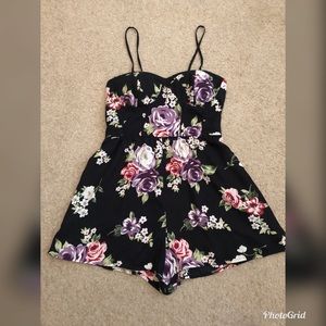 Super cute black romper with flower design! Worn twice, excellent condition!