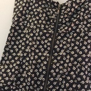 Black short shorts romper with white flower print. Spaghetti straps. Small fit.