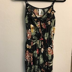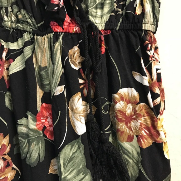 Floral romper with spaghetti straps that are adjustable. Waistband also adjust with tasseled tie!