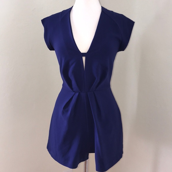 Adorable electric blue Mystic romper. Pleat detail at waistband; hidden back zipper; stretch fabric for amazing fit.