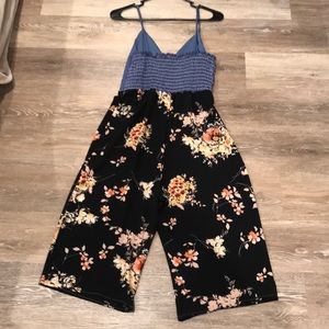 Romper ends a bit below the knee, flow designed bottom and soft but fabric on top, elastic back