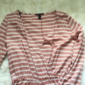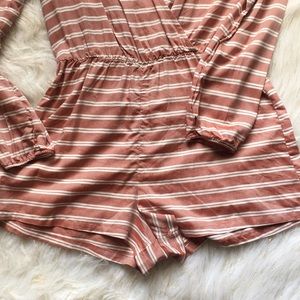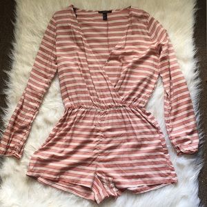 This stylish romper is from Forever 21. It is pink with white double lined stripes.