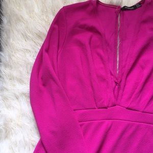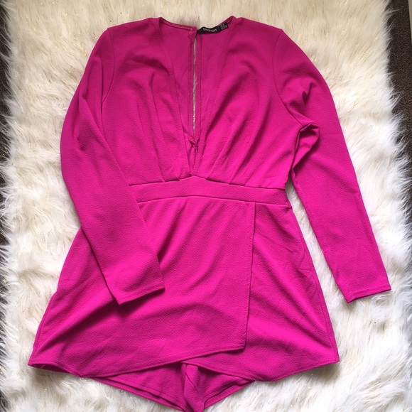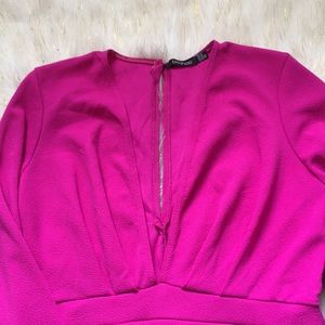 This vibrant pink romper is perfect for any occasion! Dress it up dress it down, your preference. It also has a skirt styled bottom that is perfect for movement.