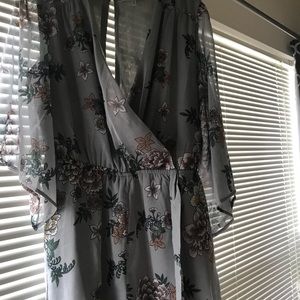 Romper with flowers on it and sleeves. Never worn before.