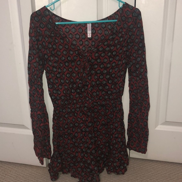 Maroon patterned romper, ties in the front! Light weight and flowy! Medium but the bottom is a little short!