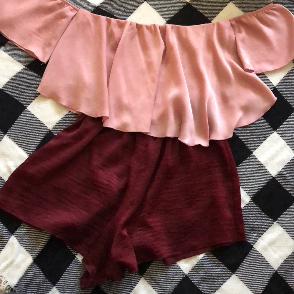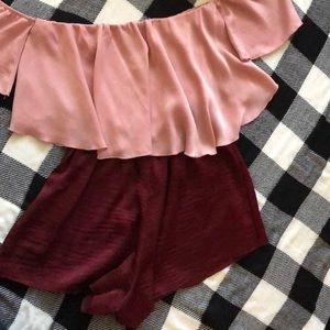 Blush pink and maroon satin romper