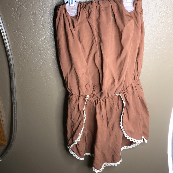 Brown with white lace around it. Worn twice