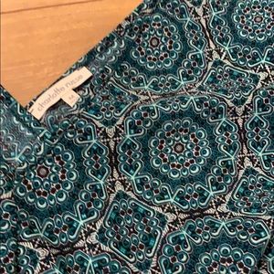Patterned romper. Looks like a dress from the front but in the back you can see the shorts. 3/4 sleeves. Very comfy. Worn once.