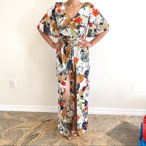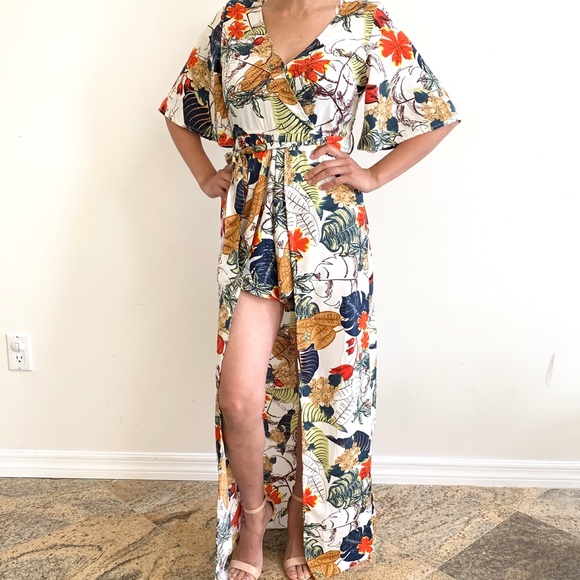 Maxi Romper Dress with shorts underneath Perfect for vacation Beautiful colors Brand new with tags Size: Small Color: Ivory