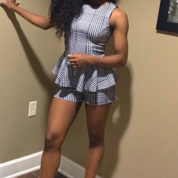 Black and white peplum romper