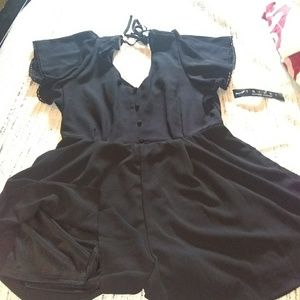The merchandise that I'm offering is a black romper with shorts . This material has SOME STRETCH to it , very casual , yet dressy can be worn to any event , along with a v neck line ( front & back ) it ties in the back ( shown in pictures) and it has a silk pair short underneath ( shown in pictures ) . If I missed any additional information that u would like to know please feel free let me know , thank you !