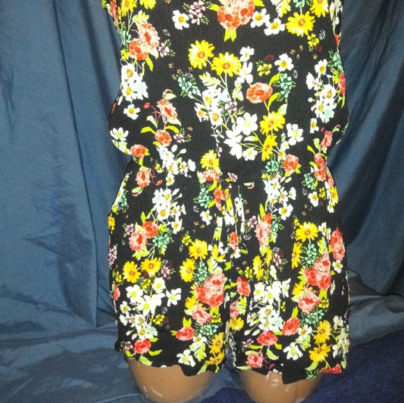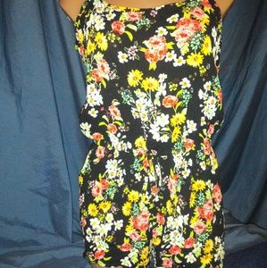 Floral romper. Tie string at waist. 100% rayon. Made in China. Size med