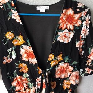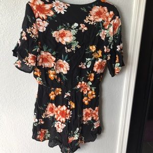 Floral print romper shorts. Low cut in front and ties. Excellent condition.