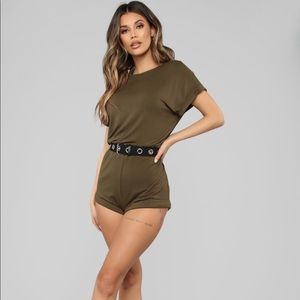 The cutest olive green belted romper. Stretchable material. Perfect for a day out with friends or a night out.