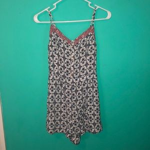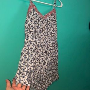 Blue pink and white fun patterned romper. Flowy with slightly stretchy material!