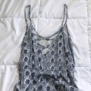 Super cute romper for sale! It was only worn once! Great for any summer event. It has adjustable straps and an elastic waist band. IT EVEN HAS POCKETS! Yes pockets!