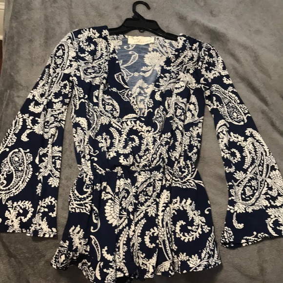 Navy blue and white romper with bell sleeves. Gently worn and in great condition. Size medium