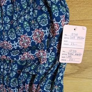 NWOT, Mind Code romper size L but fits more like a medium. 100% Rayon. Has pockets and elastic waist for definition. Super cute lightweight halter style. Purchased at a boutique in historic Grass Valley California and never worn. Great for everyday wear at a tropical vacation or just casually while running errands or to the pool as a swimsuit cover-up in the summer. Nice pattern with terra cotta, green and navy blue colors. Size large but fits more like a medium which is what I wear.