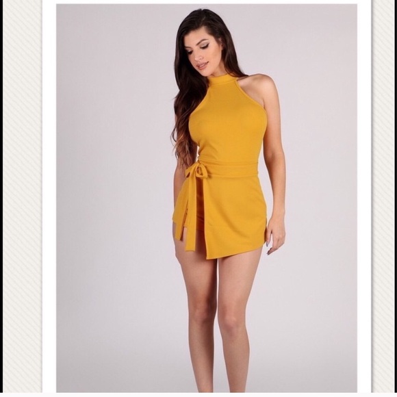 Worn once, super comfortable!! Mustard color high neck key hole back romper. Size M