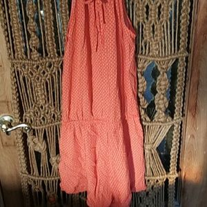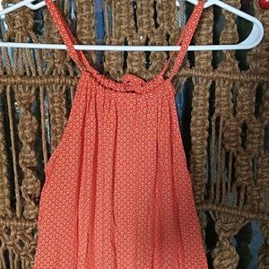 Old navy orange with lil white w black flowers on it. Very fun to wear! Makes for a cool day in the sun!