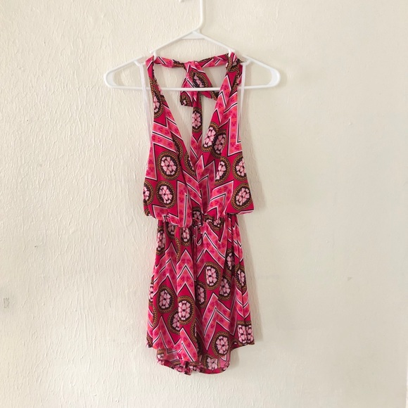 EUC Super cute pink patterned romper. Perfect for summer! Can be worn alone or as a bathing suit cover. Size - S
