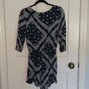 It's a long sleeve, blue, printed romper. It ties in the front between the chest. It is very flattering and comfortable.