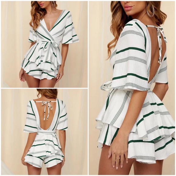 Perfect summertime Romper! Low back with a sash belt to help accentuate your waist. Lightweight material helps you to stay cool in summer.