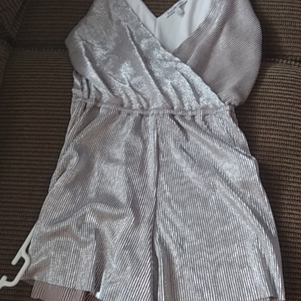 Shines silver and light pink, low cut, perfect for a night out. Poleyester; the inside is super silky, so you don't feel the rougher sparkly outer layer