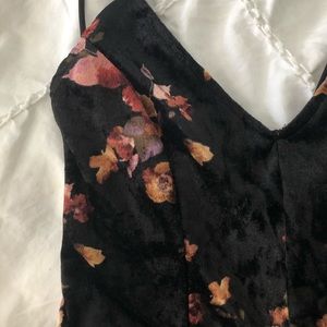 Sexy velvet black & floral romper. Open in the back w/ adjustable straps. Like new Size S