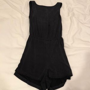 Super cute grey romper. Very soft and a really fun twisty back. Small stain on the front.