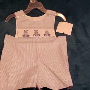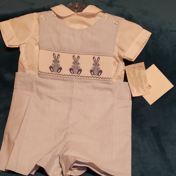 Blue/White Short Romper w/Bunny Stitching on Front. *Shirt Sold Separately.