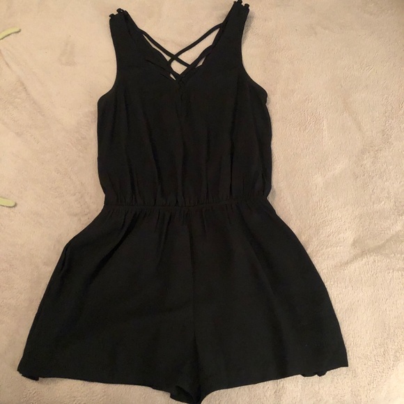 Cute Black Romper; sleeveless; laser cutout in front and back