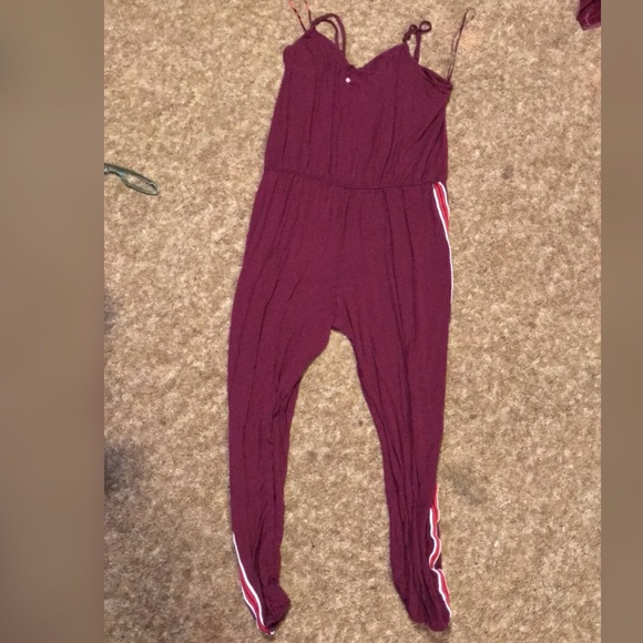 Burgundy noodle strap romper with side strips