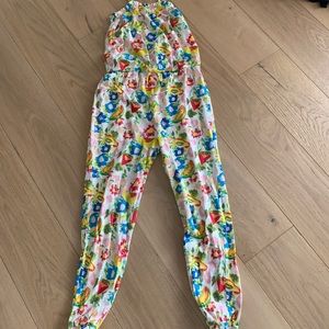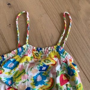 Floral/abstract art printed romper! in great condition, flattering cut. Super comfortable as well! Model is 5’3 and the length is perfect.