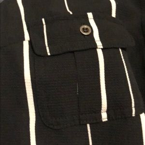 Never worn, didn’t like how it looked on me. Has two breast pockets and two bottom front pockets.
