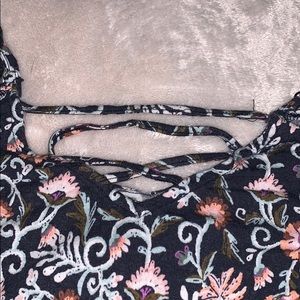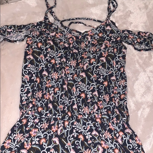 Floral romper that is off the shoulder with adjustable straps!
