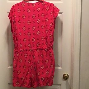 Pink tribal print romper. V neck. Two hidden snap button closure on front shown in above pictures.