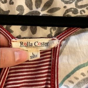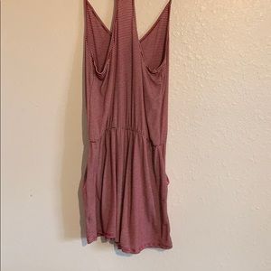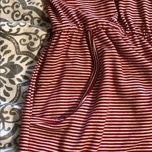 Red and white spaghetti strap romper. Has pockets.