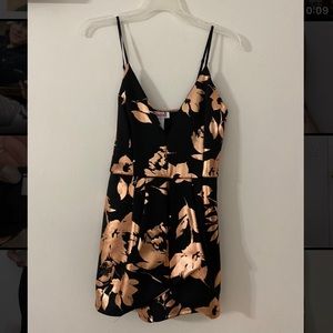 Black romper with rose gold flower detail. Price is negotiable.