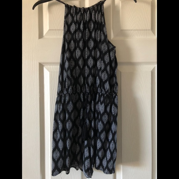 Aztec pattern High neckline Button closure on back Tassel string on front