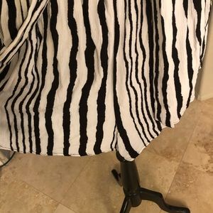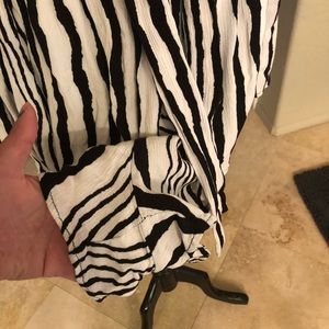 Zebra print romper. Couldn’t fit it on mannequin but just needs to be ironed. No damage. Has strings that can be tied in a bow in the front