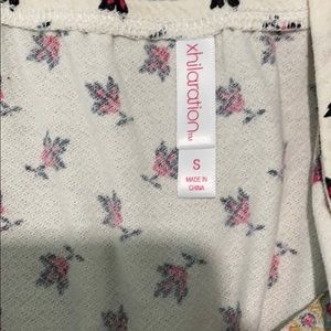 Spaghetti strap cream romper, with flower design. cute pattern on top. worn once. thicker material, perfect for spring weather.