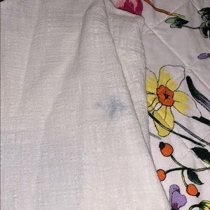 White romper with small stain on side. Not sure where the stain came from but would possibly come out in the wash or with some TLC!