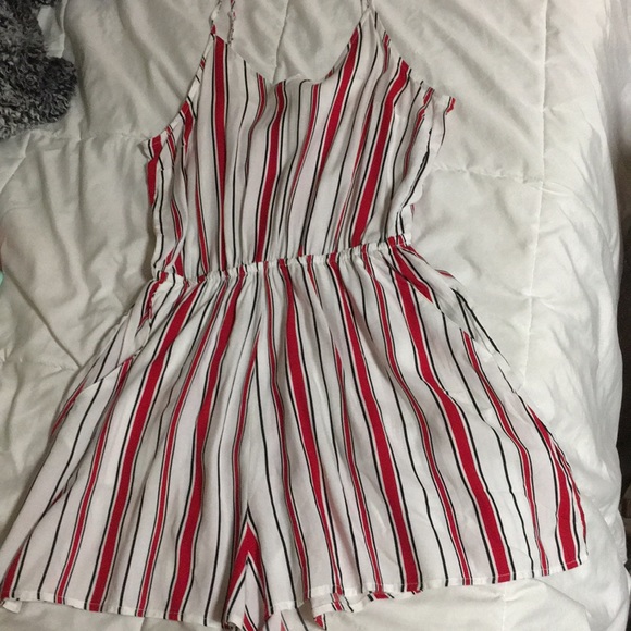 White, Red, & Black Striped Romper. BRAND NEW. Smoke-free home. Must go!
